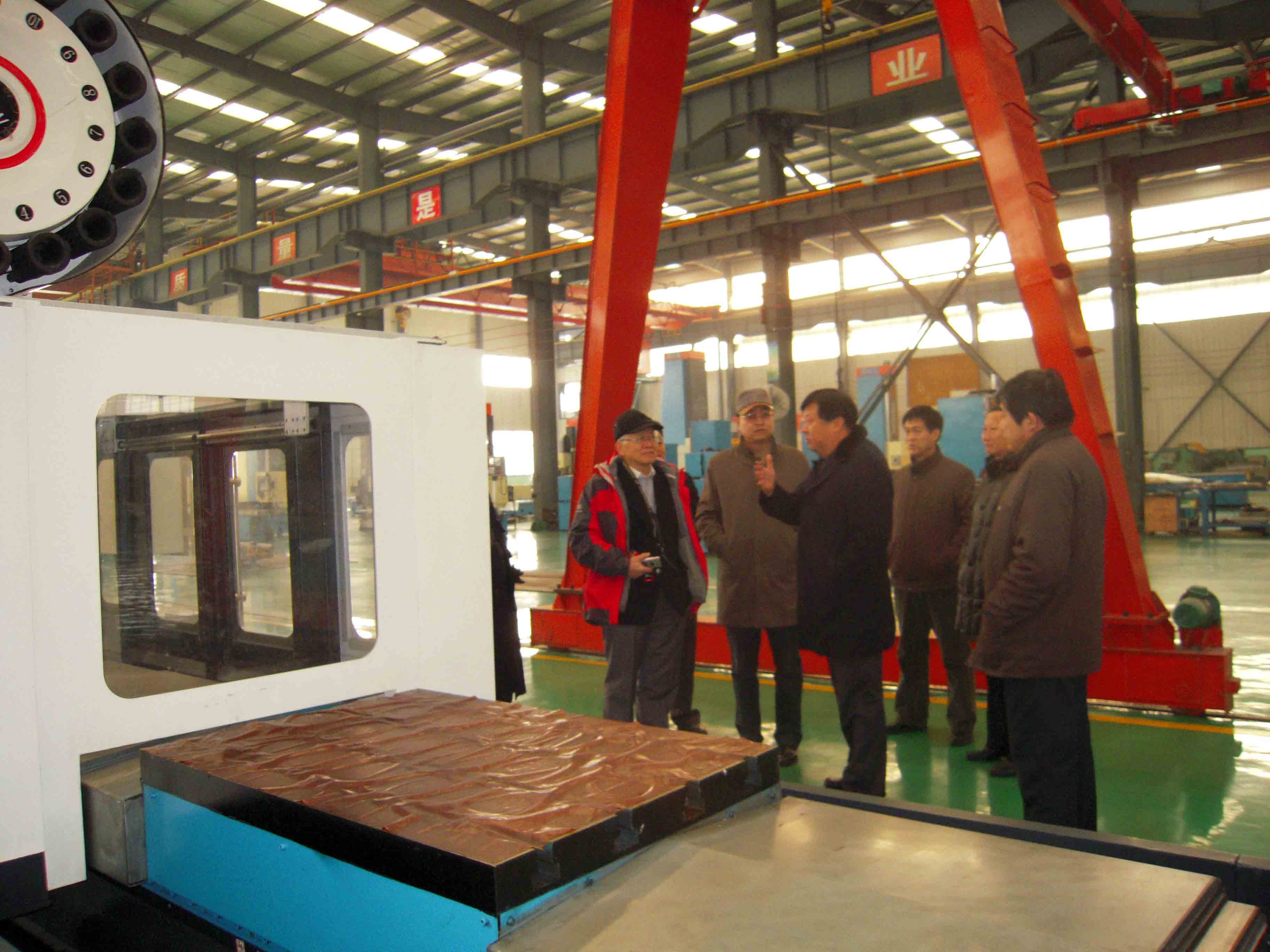 元月6日至7日 ,台湾合一风力科技股份有限公司董事长衣仕凡一行来集团公司考察洽谈。图为董事长、总经理康凤明陪同衣仕凡董事长参观考察生产现场。